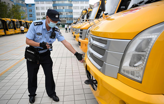 新学期临近,宁夏公安厅交管局车管科联合银川市车管所等单位,组织民警上门服务,进行校车安全集中查验活动。查验民警对银川市西幼教育集团开学即将投运的56辆校车进行性能、标志标牌、安全设备等的全面检查,让校车安全上路。
